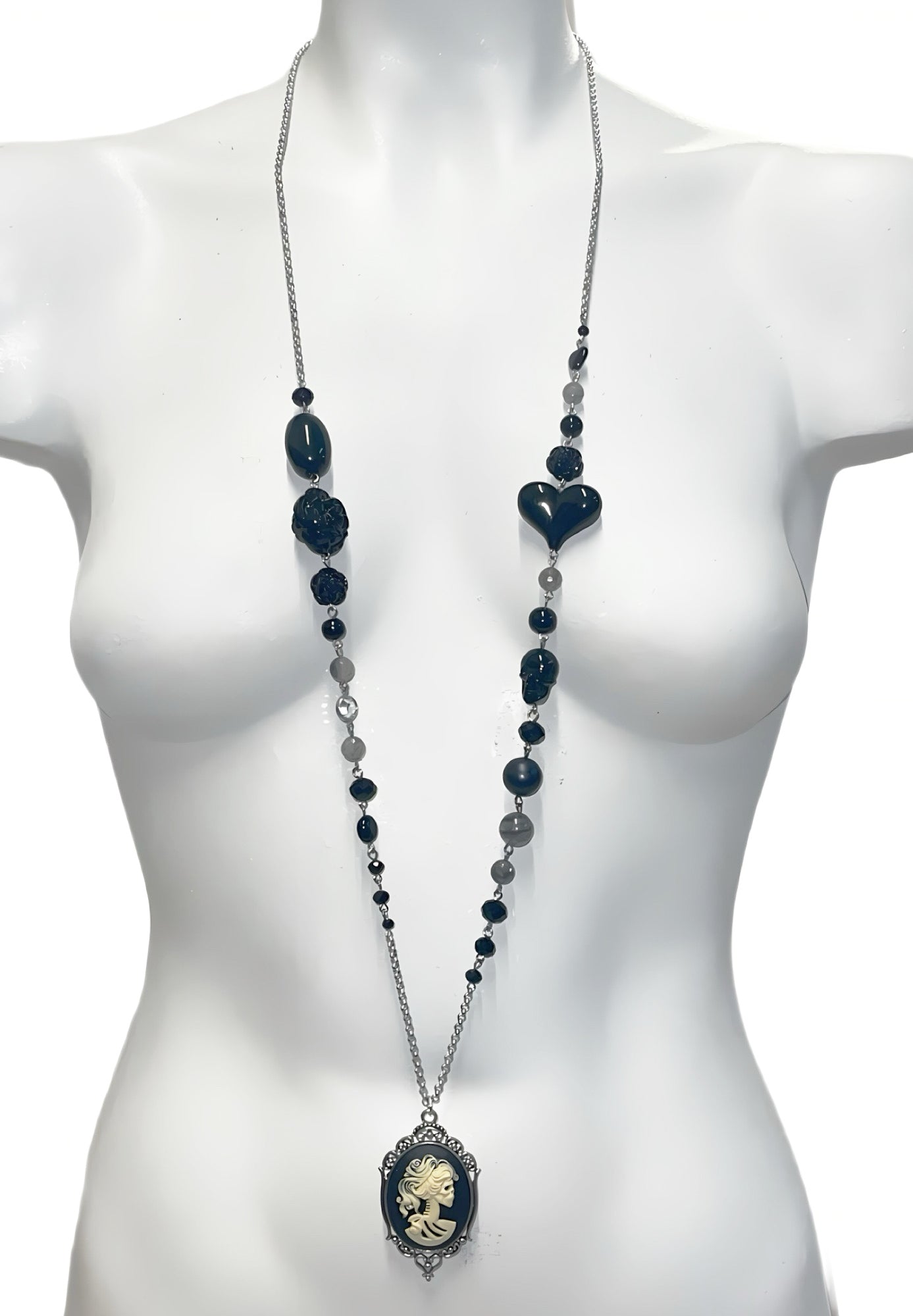 Super long chain with cute adornments that complement the lolita cameo.